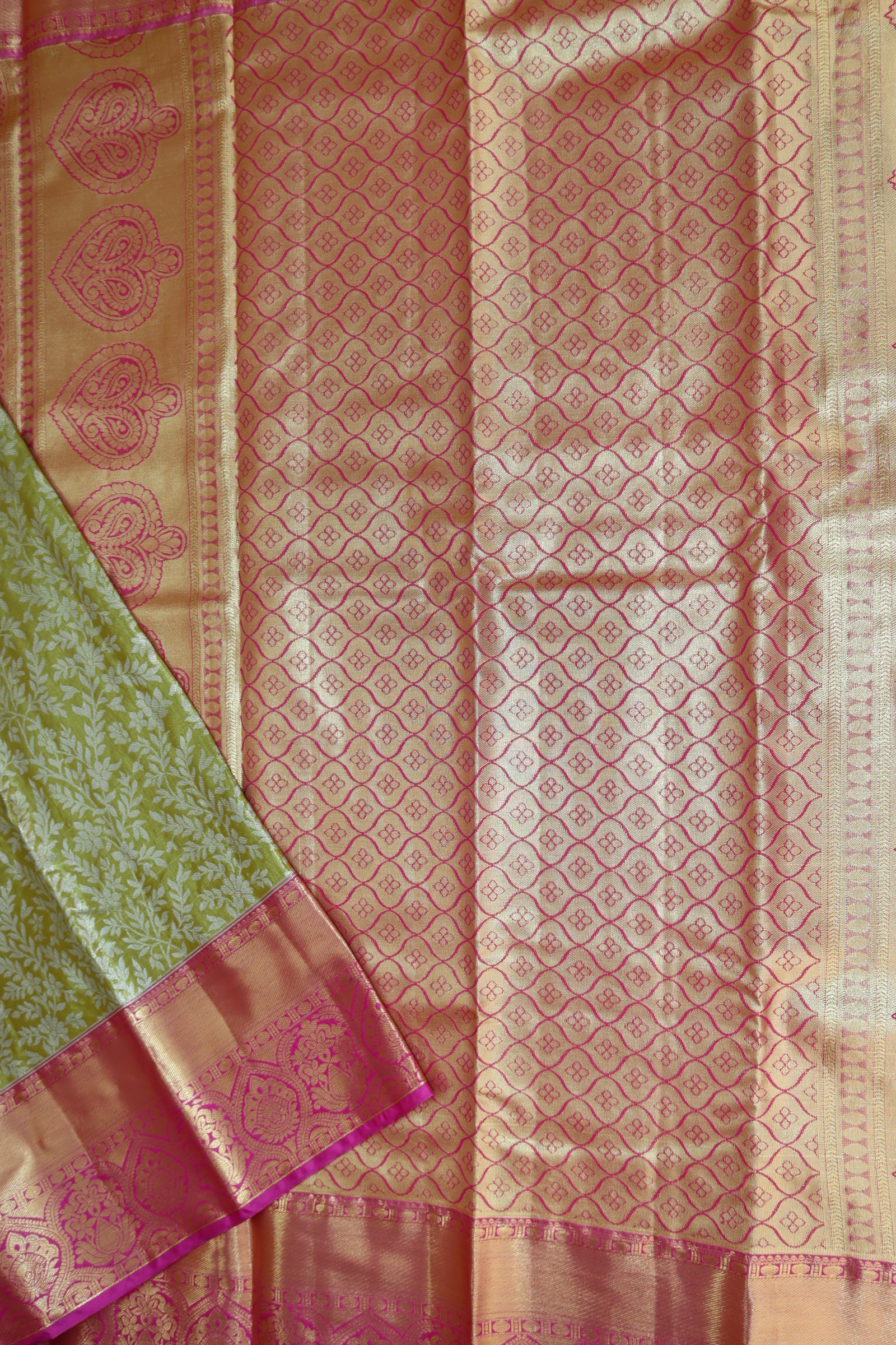 Elevate your style with our Stunning Green Tissue Kanjipuram Saree. Made from high-quality materials, this saree offers sophistication and comfort. The lightweight fabric provides versatility and ease, perfect for any occasion. Comes with a complimentary blouse for added convenience.