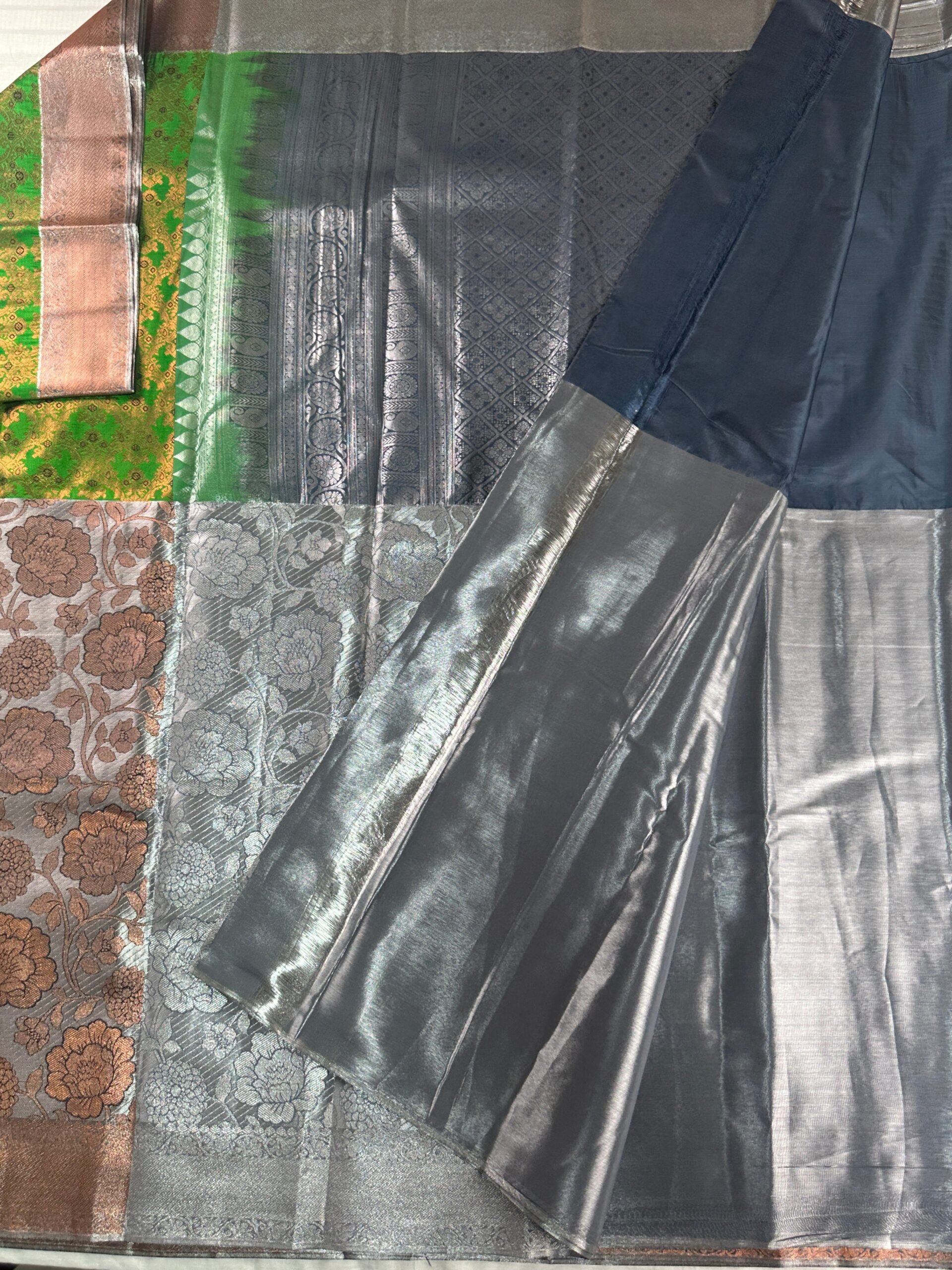 Make a luxurious statement in this Authentic Green Kanjipuram Silk Saree. Crafted from silk, its vibrant hue will draw the eye and its finely spun fabric will glide against your silhouette, providing a comfortable but regal look. Elegant, tasteful, and exclusive, this saree is ideal for achieving an incomparable grandeur at any occasion.