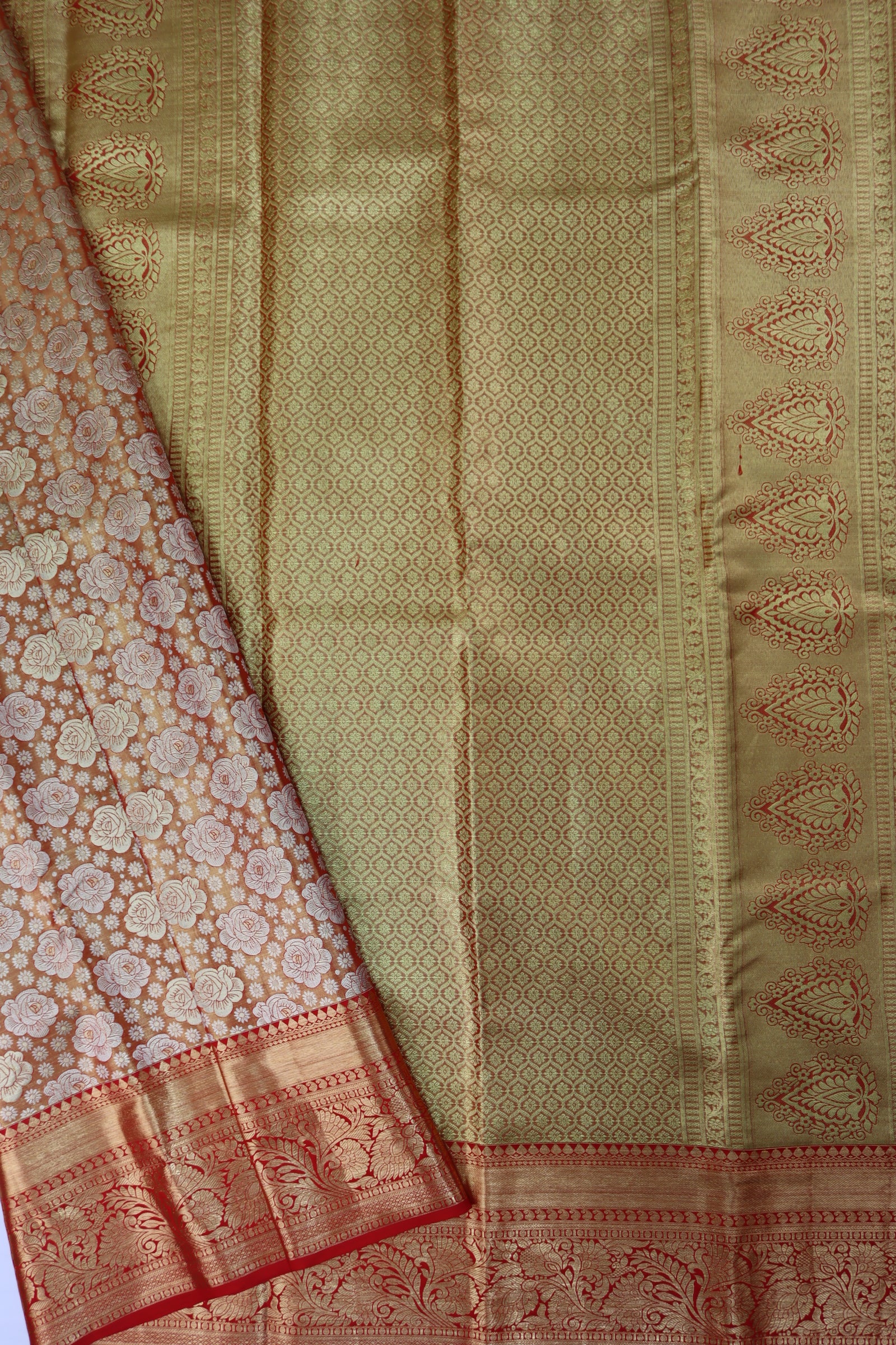 Enhance your wardrobe with our luxurious Orange Kanjipuram Saree. Made from high-quality materials, this saree exudes sophistication and elevates your personal style. Its majestic design and versatile blouse make it suitable for any occasion. Add a touch of opulence to your attire with this exquisite piece.