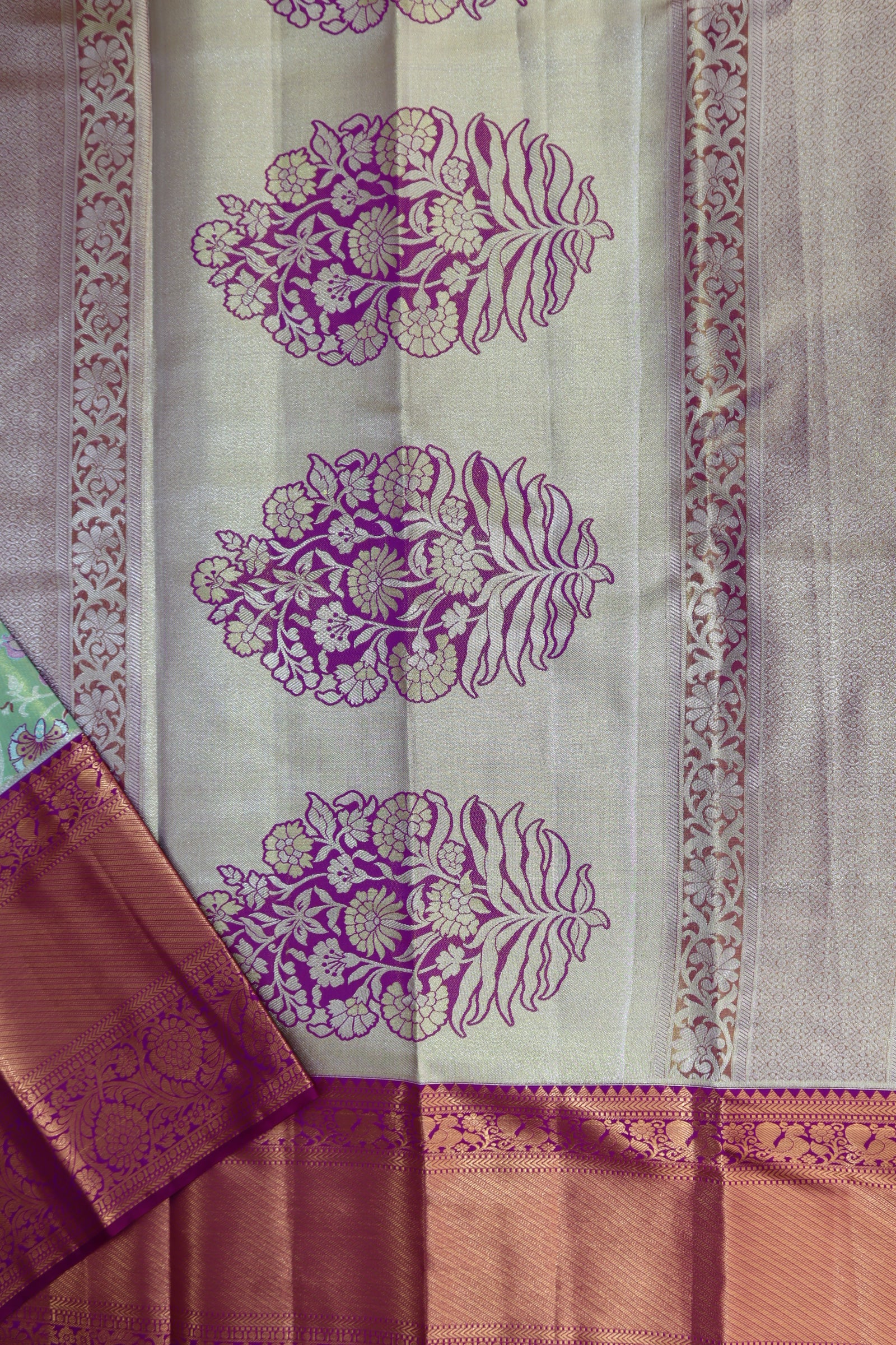 Experience the height of elegance with our Classic Green Kanjipuram Saree. Crafted from luxurious silk, this stunning wine saree embodies both grace and comfort. Perfect for any occasion, its regal design and coordinated blouse offer versatile styling options for a sophisticated look.