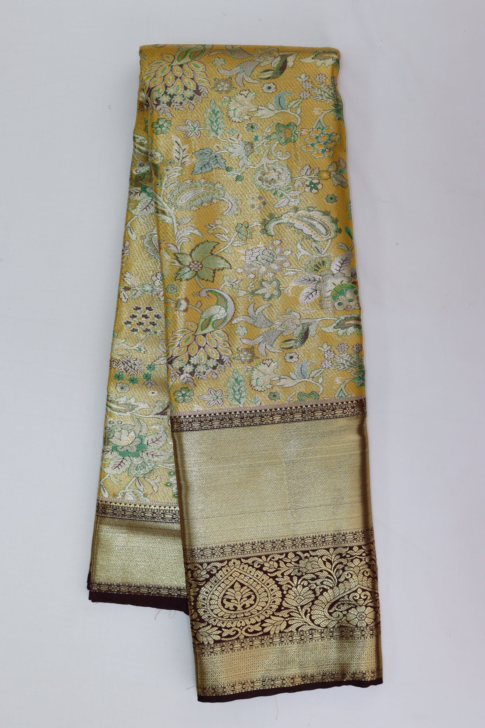 Created using high-quality, lightweight materials, our Classic Yellow Kanjipuram Saree exudes effortless elegance. The saree’s versatile blouse allows for endless styling possibilities, making it suitable for any occasion. Elevate your style with this exquisite saree.