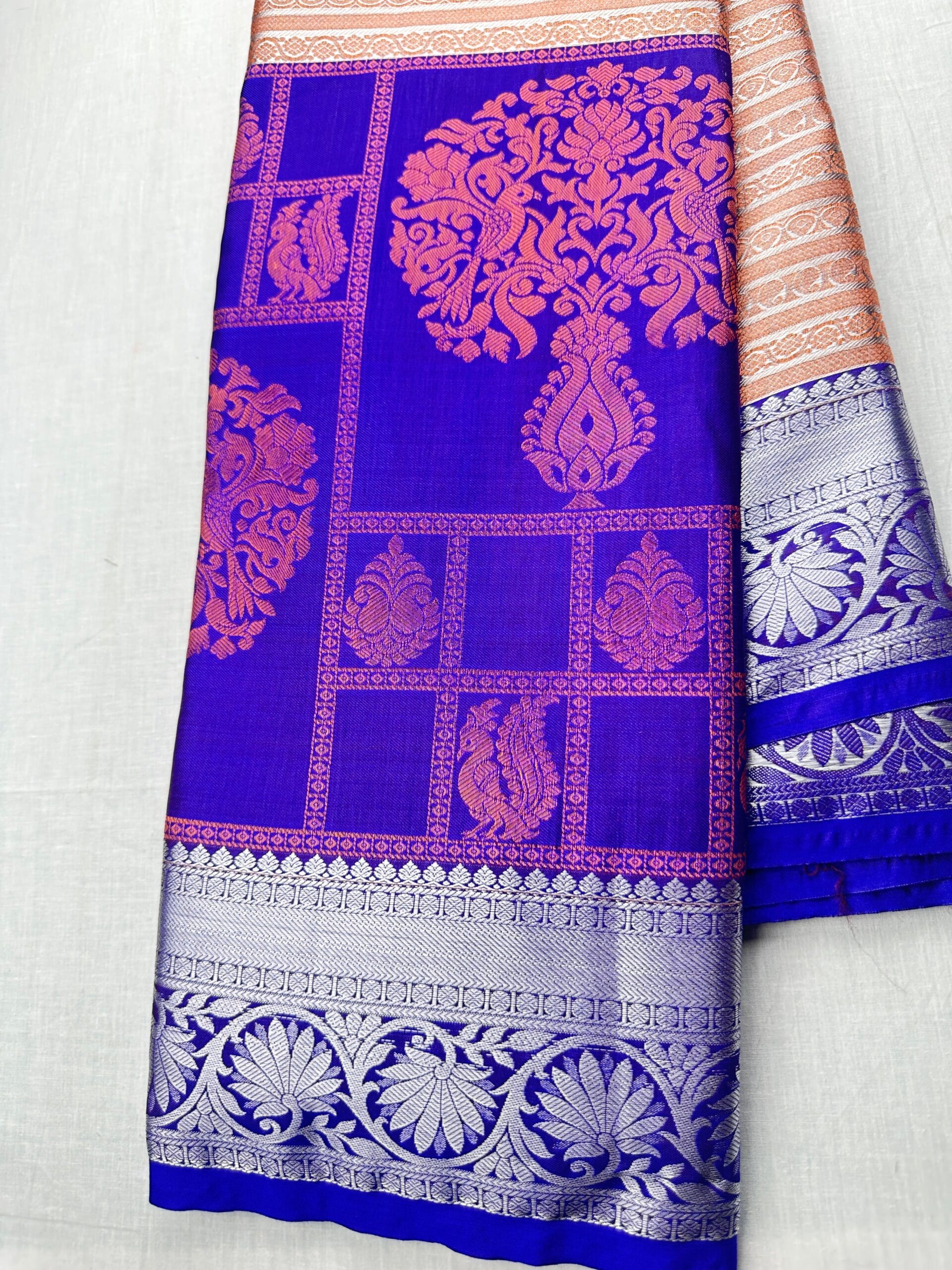 This beautiful Classy Copper with Blue Kanjipuram Silk Saree is perfect for any special occasion. Made with high quality silk, it features a stunning copper finish with a blue kanjipuram design. Perfect for a night out or a formal event, you’ll make a statement in this elegant saree.
