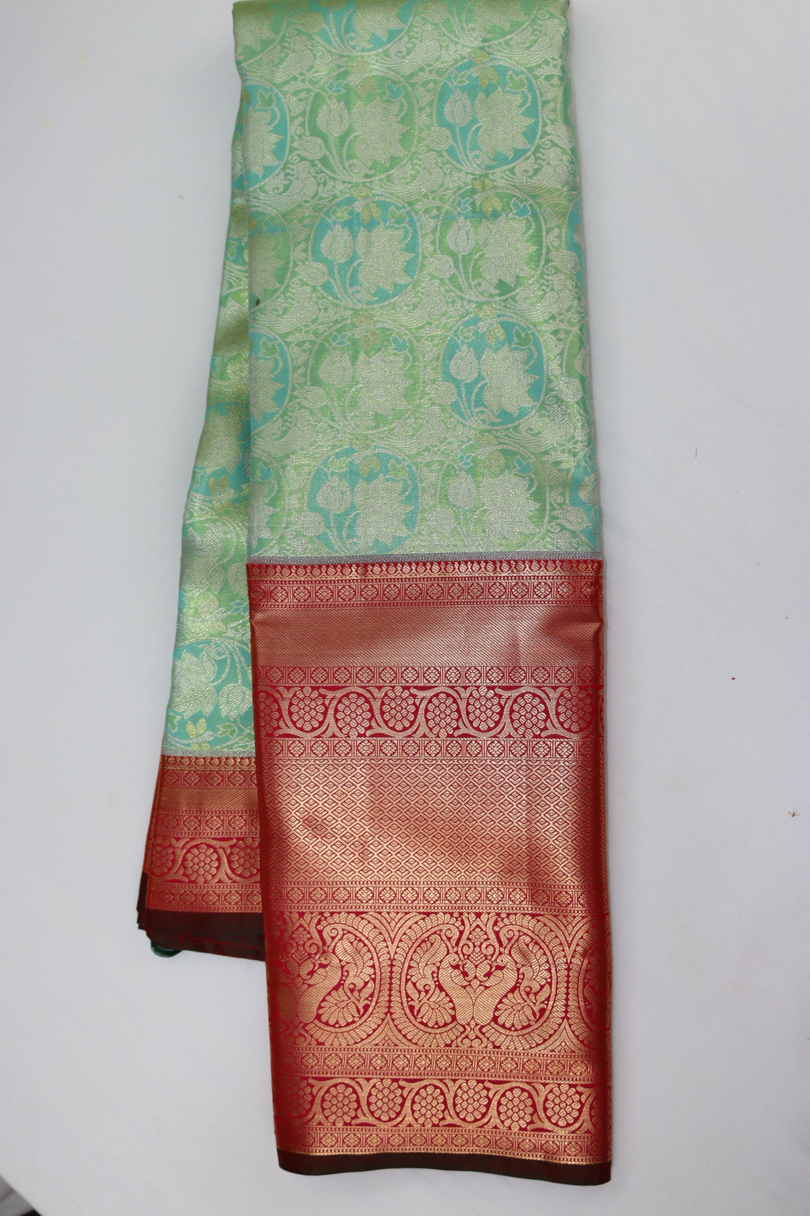 Uncover the beauty of the Colorful Kanjipuram Saree. Meticulously made with high-quality materials and detailed designs, this timeless saree is perfect for any occasion. The lively color exudes happiness, while the blouse adds to its elegant look. Show off your individual style and self-assurance with this stunning saree.