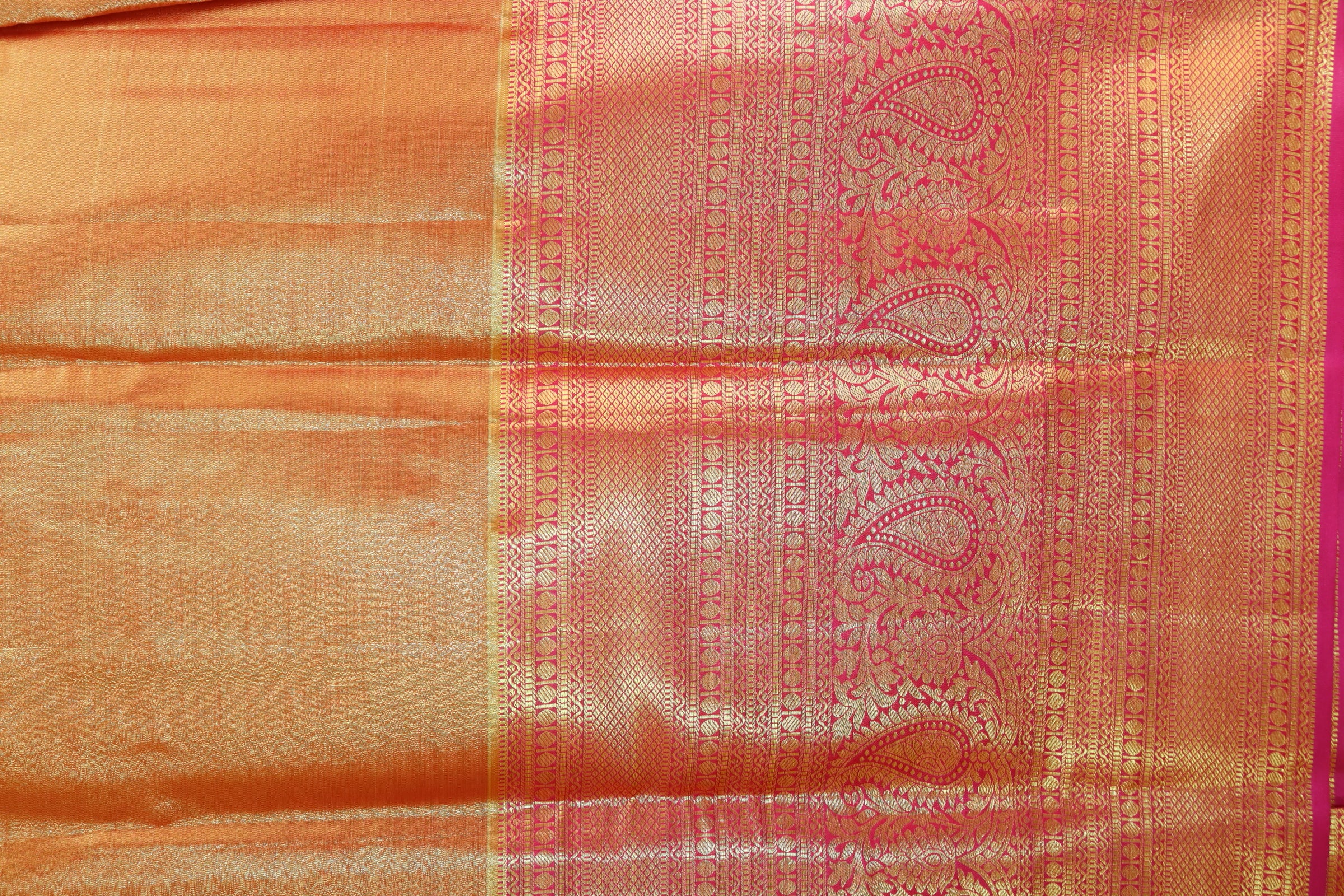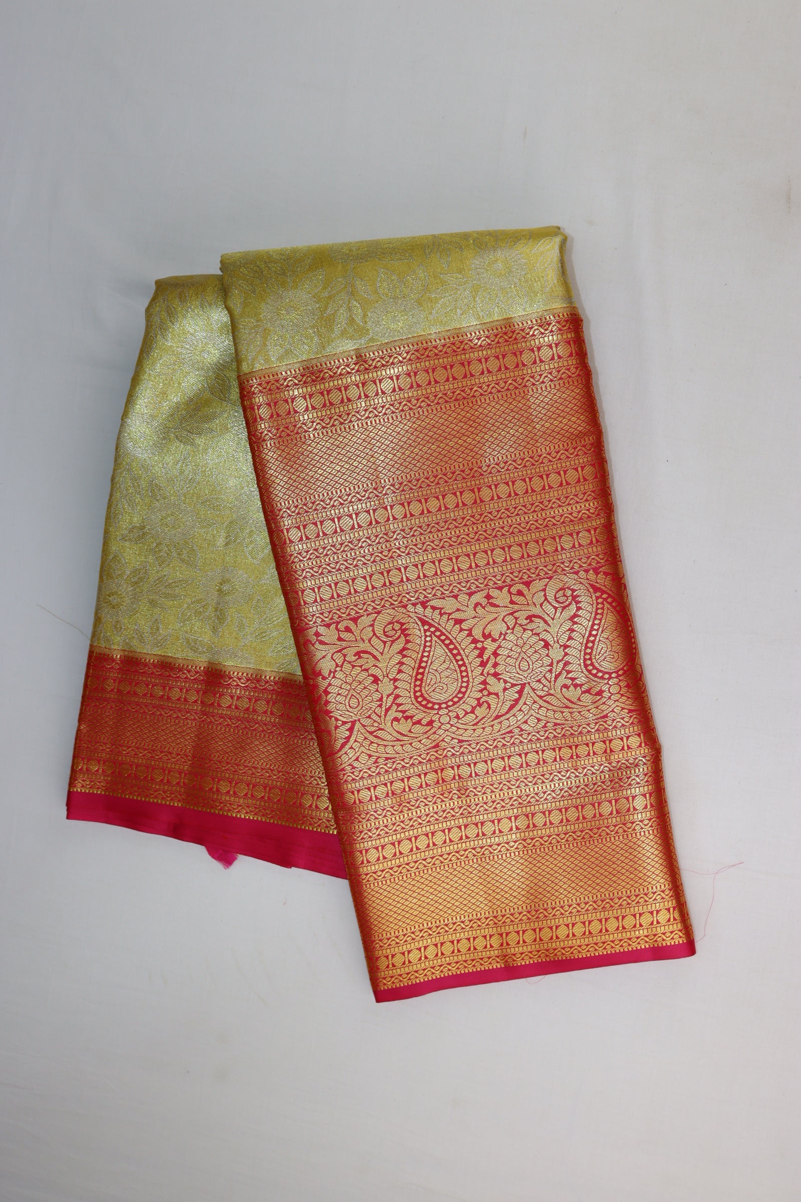 Meticulously woven with high-quality materials, this Elegant Yellow Kanjipuram Saree seamlessly blends elegance and coziness. With its airy construction and lavish feel, it is ideal for any occasion. Comes with a blouse to enhance its versatility.