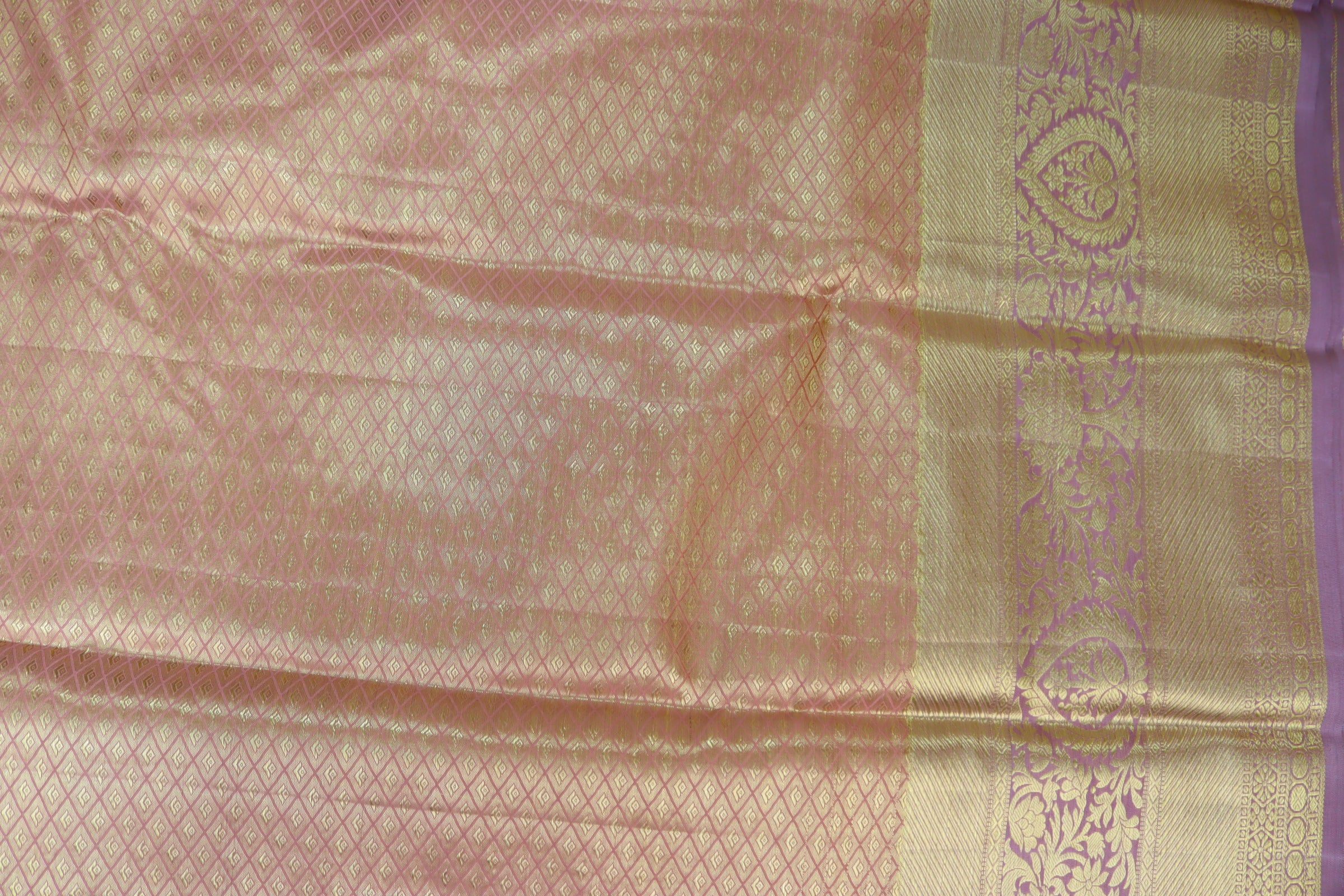 Indulge in sophistication with the Graceful Pink Kanjipuram Saree. The exquisite fabric offers lightweight comfort and opulent texture, perfect for any occasion. The Amazing Grey color adds an elegant touch, while the included versatile blouse allows for effortless styling. Elevate your collection with this expertly designed piece.