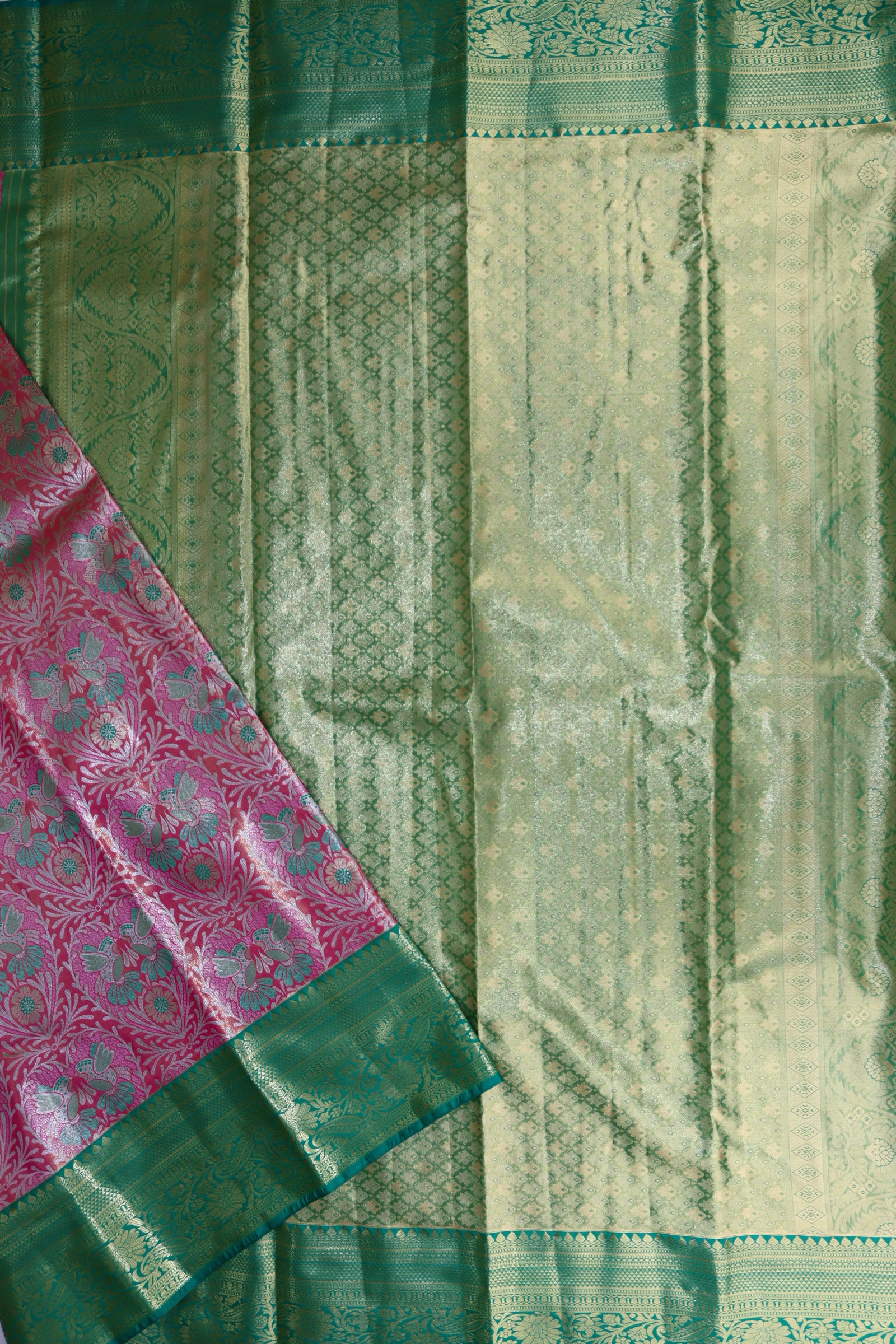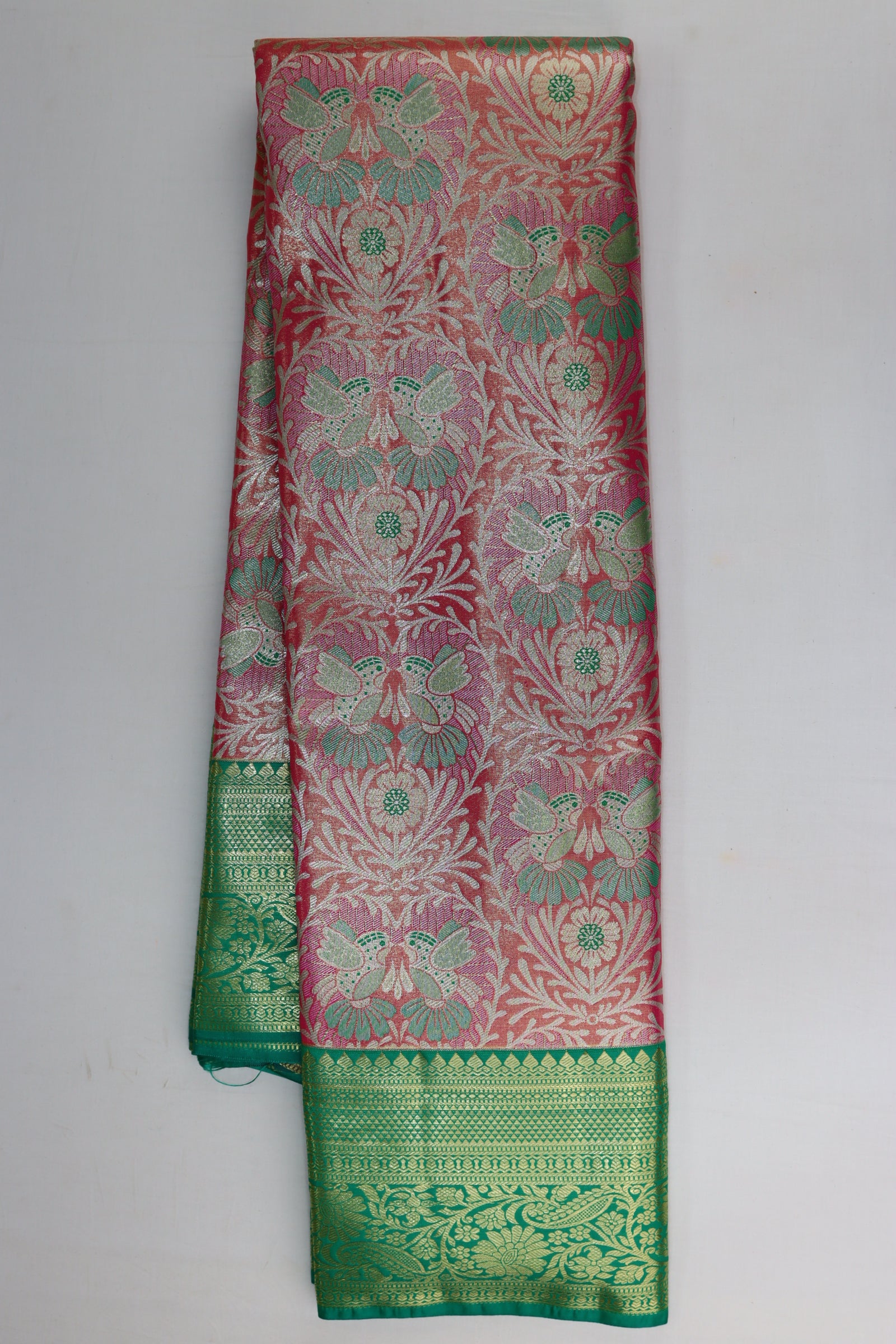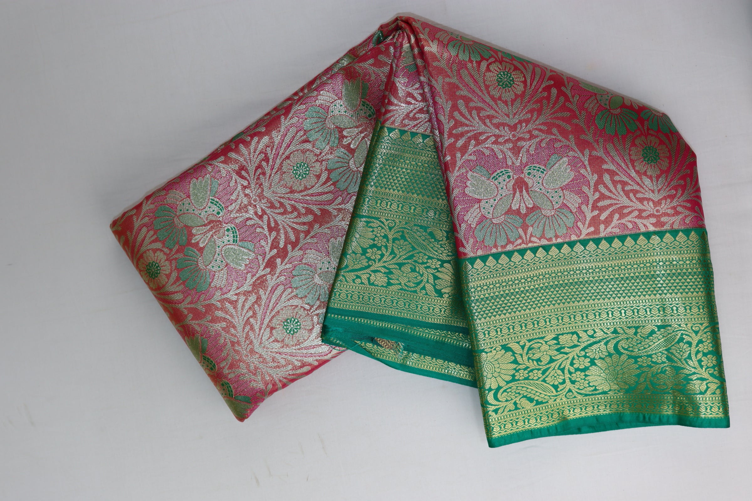Enhance your wardrobe with the luxurious Peach Kanjipuram Saree. Meticulously crafted by skilled artisans, this saree features exquisite details and premium materials. Its lightweight fabric provides both style and comfort, making it a versatile option for any event. Finish your polished ensemble with the expertly tailored blouse.
