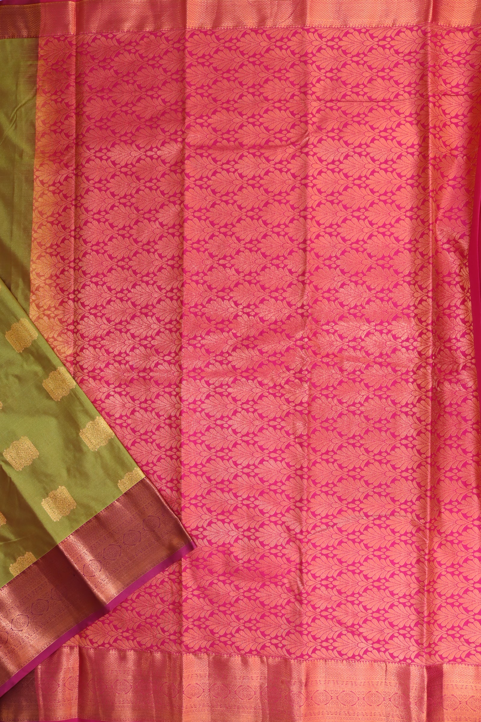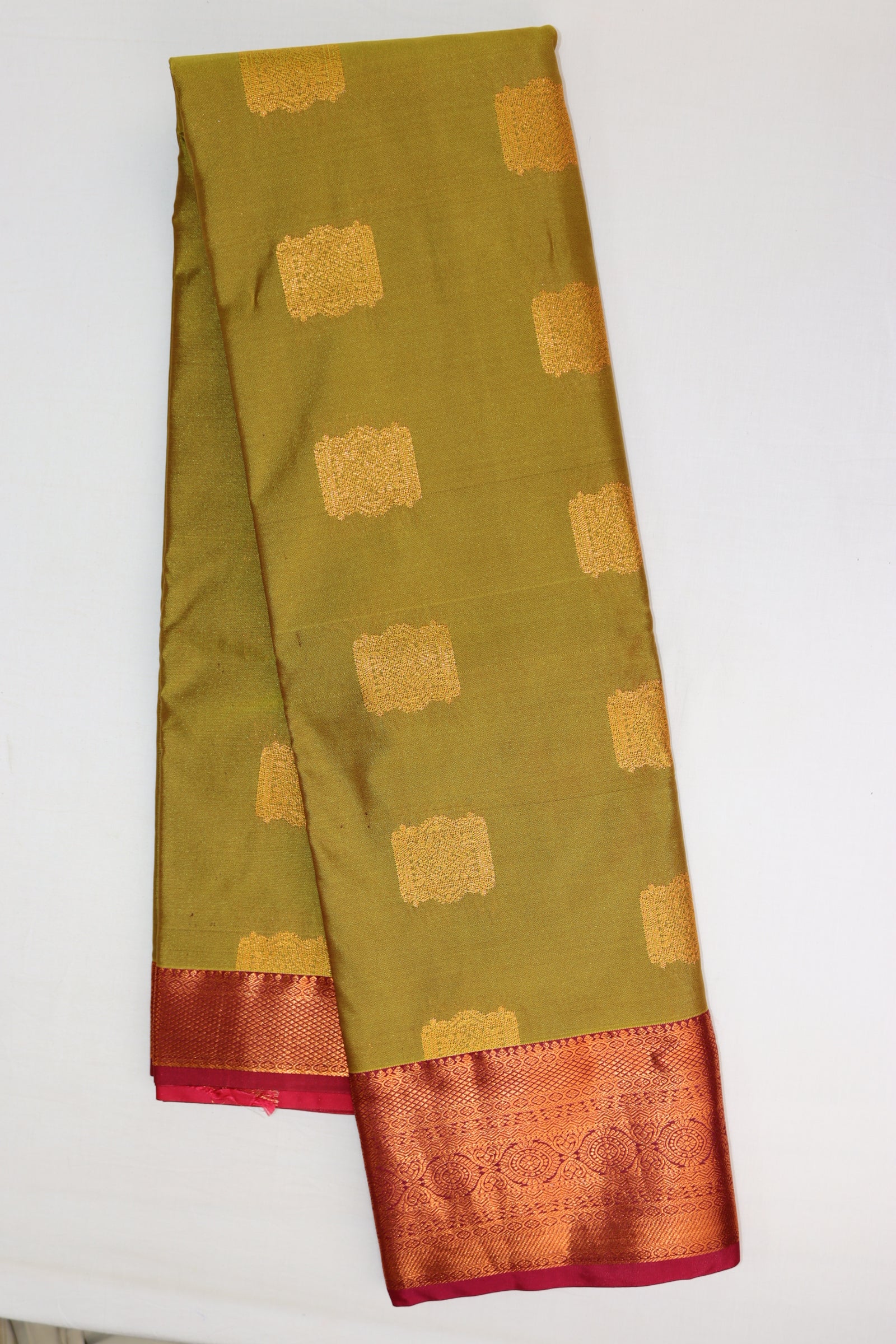 Meticulously designed with high-quality materials, the Opulent Olive Green Kanjipuram Saree seamlessly blends fashion and ease. Lightweight and opulent, it is an ideal choice for any event. Along with a versatile blouse, it is a wardrobe essential.