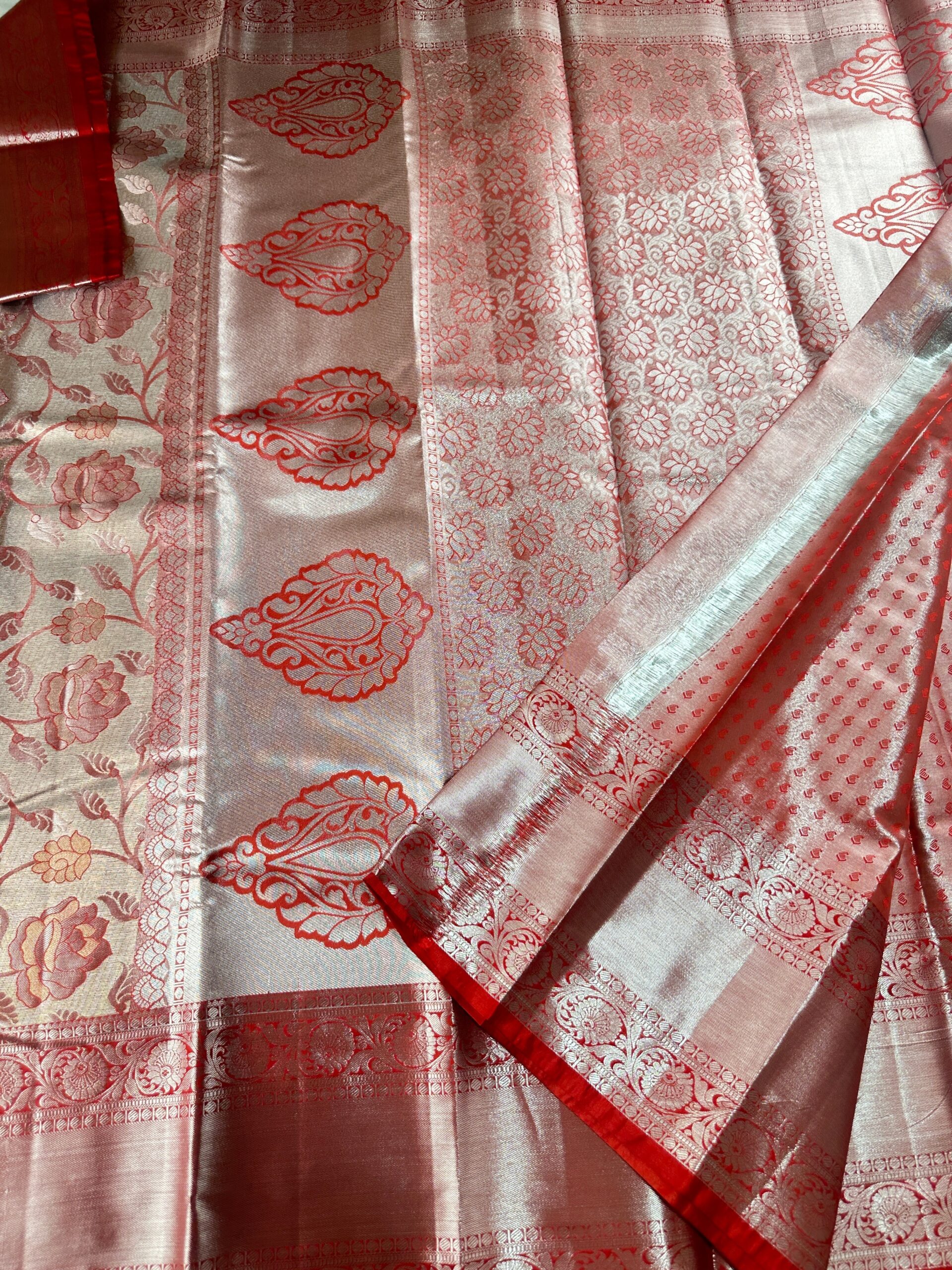 This beautiful Silk Saree from Timeless is made from Kanjipuram Silk, perfect for special occasions. The luxurious fabric is smooth and durable, ensuring both comfort and beauty. A timeless piece that will last for years.