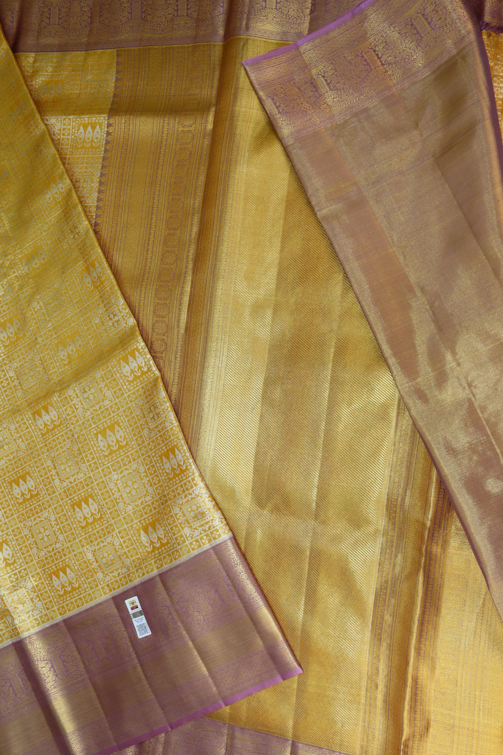 Expertly crafted and intricately designed, this Traditional Gold Pure Kanjipuram Saree is a must-have addition to any traditional wardrobe. Made from high-quality material, it offers a timeless elegance and effortless style. With its vibrant colors and exquisite craftsmanship, this saree is sure to make a statement at any occasion.