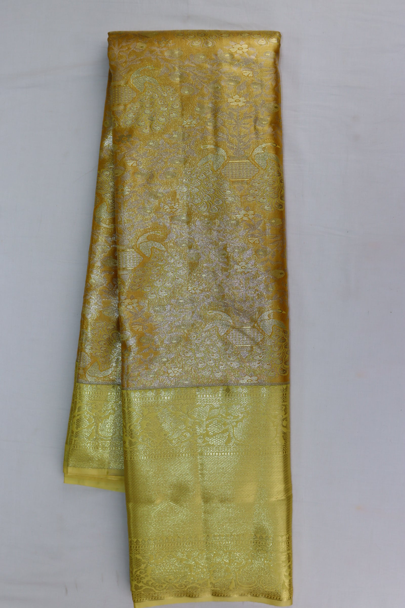 Indulge in the opulent experience of our exquisite Yellow Kanjipuram Saree. Painstakingly crafted by expert artisans with top-notch materials, this saree radiates elegance and class. Its airy fabric seamlessly blends fashion and comfort, making it ideal for any event. Complement it effortlessly with the impeccably tailored blouse for a sophisticated style statement.